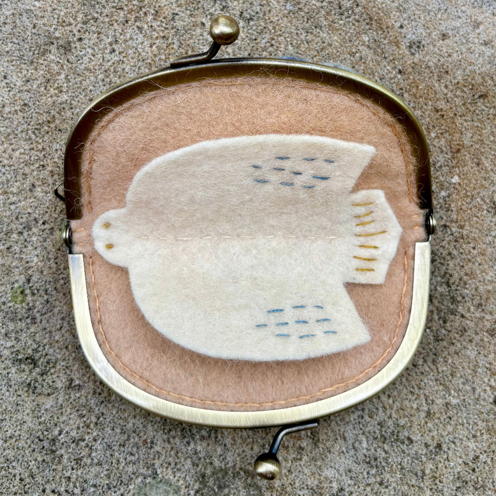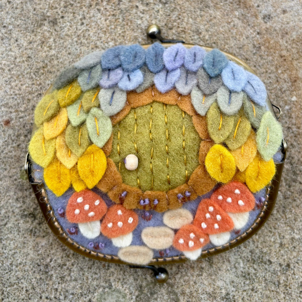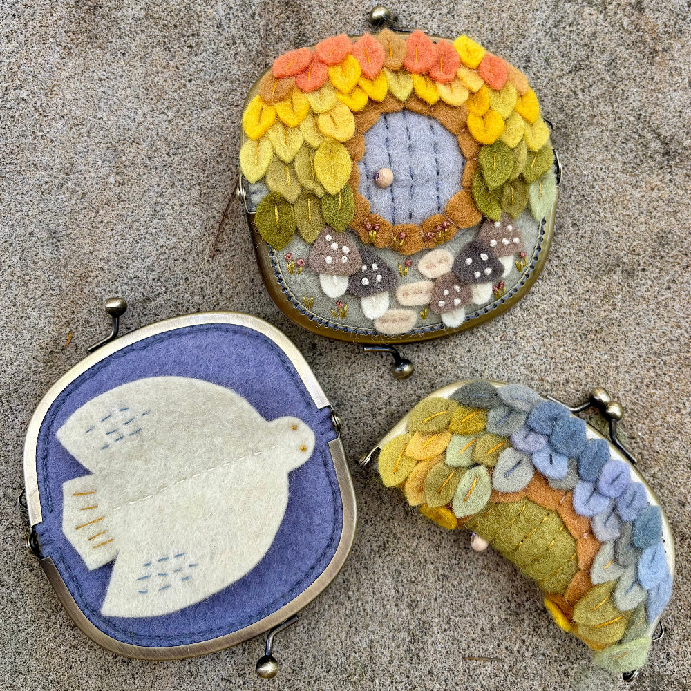 Enchanting felt embroidered Needle Purse with clasp closure, lovingly handmade by local crafter, Yuki.