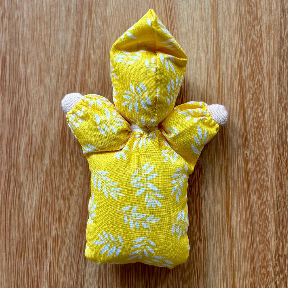 Handmade Mini Steiner/ Waldorf Doll with yellow floral design, back view