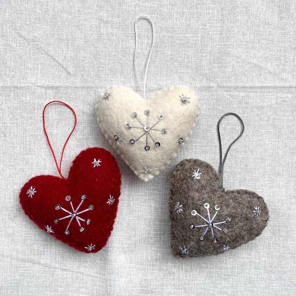Add a touch of charm to your Christmas tree with these sweet felt heart decorations, featuring delicate hand-stitched details. Perfect as a festive keepsake or a thoughtful gift for loved ones, they bring warmth and meaning to the holiday season.